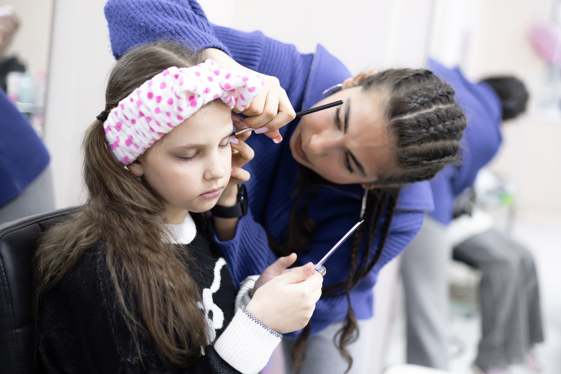 Прошел очередной мастер-класс макияжа. Пять юных леди провели с нами эти два часа. Пробовали работать с разными текстурами, инструментами. И даже сделали несложные «стрелки». Для желающихжелающих - экспресс фотфотосет.